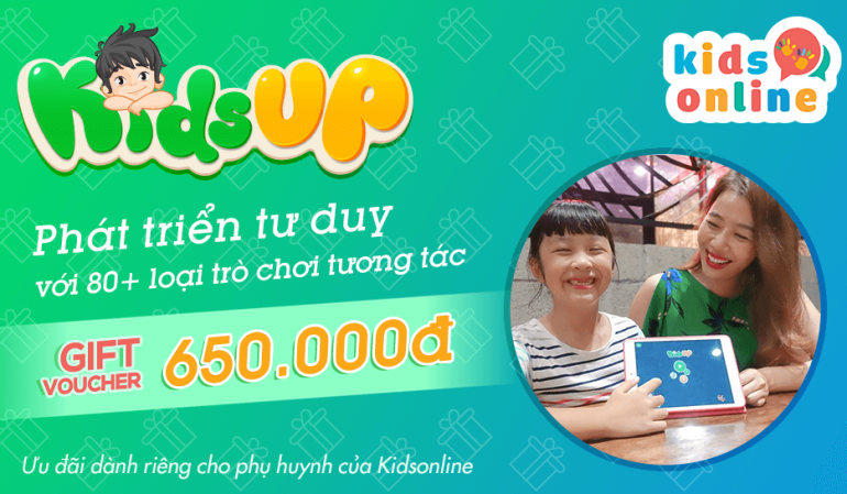 [Độc quyền trên KidsOnline] Tặng ngay 650.000đ cho các bé được bố mẹ lấy mã chương trình quà tặng KidsUp. Kids UP là chương trình giáo dục sớm đầu tiên tập trung phát triển tư duy cho trẻ thông qua các