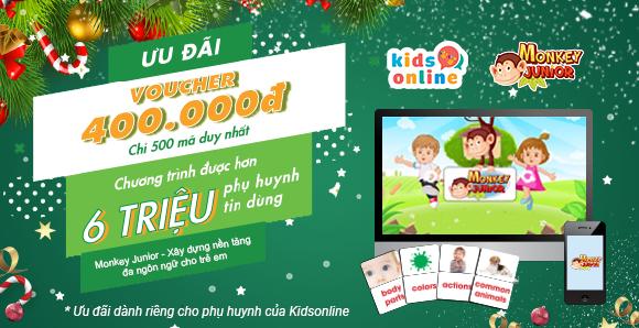 : Quà tặng đặc biệt nhân dịp giáng sinh từ Monkey Junior – Voucher trị giá 400.000VNĐ và bộ quà tặng trị giá 150.000VNĐ chỉ dành tặng riêng cho phụ huynh của Kidsonline.