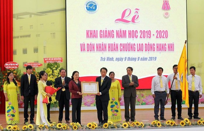 Với những kết quả đạt được, Trường ĐH Trà Vinh vinh dự đón nhận Huân chương Lao động hạng Nhì của Chủ tịch nước, nhân ngày khai giảng năm học mới 2019-2020.