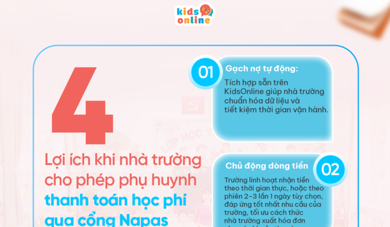 4 lợi ích cho trường mầm non khi sử dụng thanh toán học phí qua cổng Napas trên KidsOnline