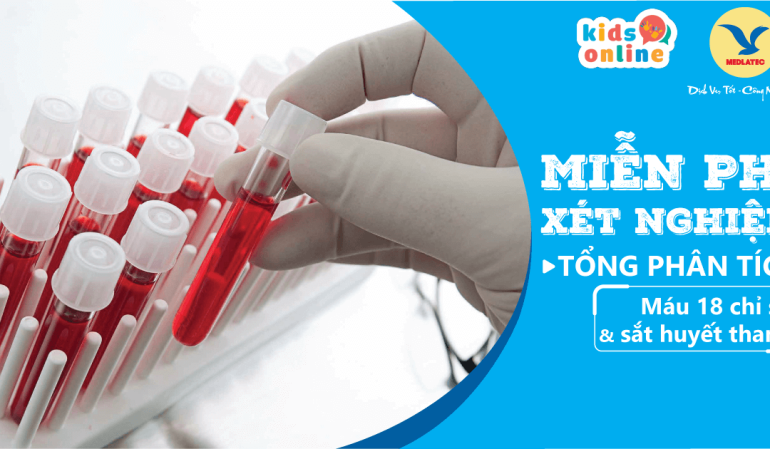 [Độc quyền cho khách hàng KidsOnline] Ưu đãi sử dụng dịch vụ lấy mẫu xét nghiệm tại nhà: Miễn phí xét nghiệm Tổng phân tích máu 18 chỉ số và sắt huyết thanh.