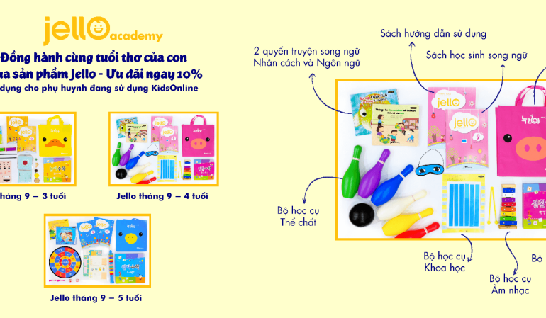 [Độc quyền tại KidsOnline] Ưu đãi tới 10% Bộ tài liệu & học cụ Jello khi các bố mẹ KidsOnline đăng ký mua sản phẩm cho các bé.